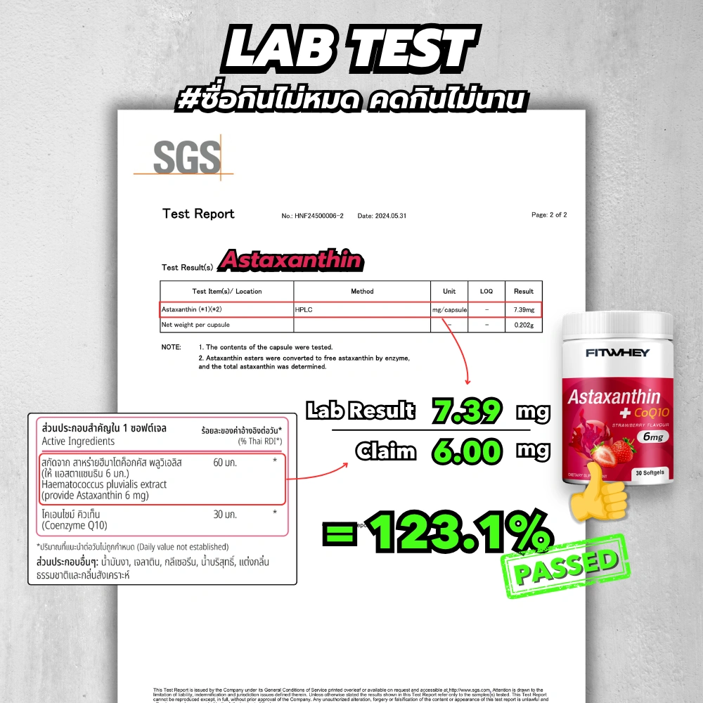 ✓ Astaxanthin 6 mg จากสาหร่ายแดงธรรมชาติ (Haematococcus pluvialis)