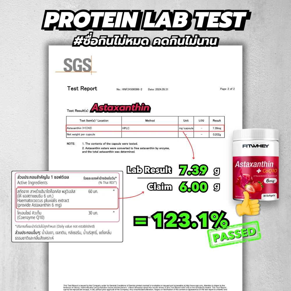 ✓ Astaxanthin 6 mg จากสาหร่ายแดงธรรมชาติ (Haematococcus pluvialis)