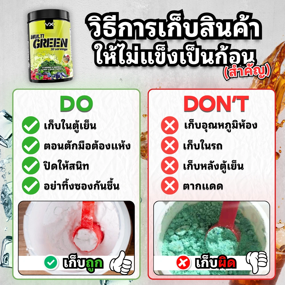 • เก็บในที่ที่แห้ง และ เย็น (ไม่เกิน 25 - 30 °C) และไม่โดนแสงแดด